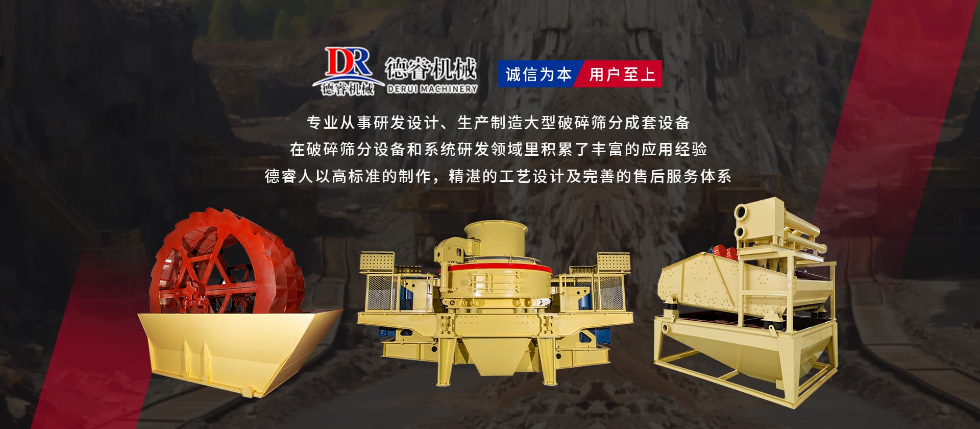 “誠信為本,用戶至上”德睿人以高標準的制作,精湛的工藝設計及完善的售后服務體系在破碎篩分設備和系統研發(fā)領域里積累了豐富的應用經驗。借助在破碎行業(yè)的豐富經驗,公司可向客戶提供碎石制砂生產線設計、安裝、調試等交鑰匙工程,同時承接破碎系統的爆破、裝運、破碎等生產運行總承包。